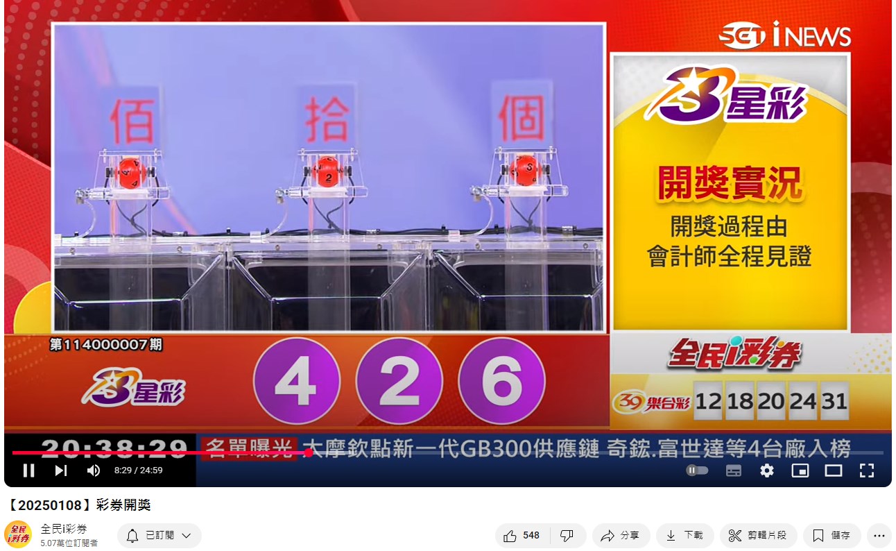 專區【全民i彩券】台灣彩券開獎實況轉播 威力彩、今彩539、三星彩、四星彩 |三立新聞網 SETN.com - YouTube