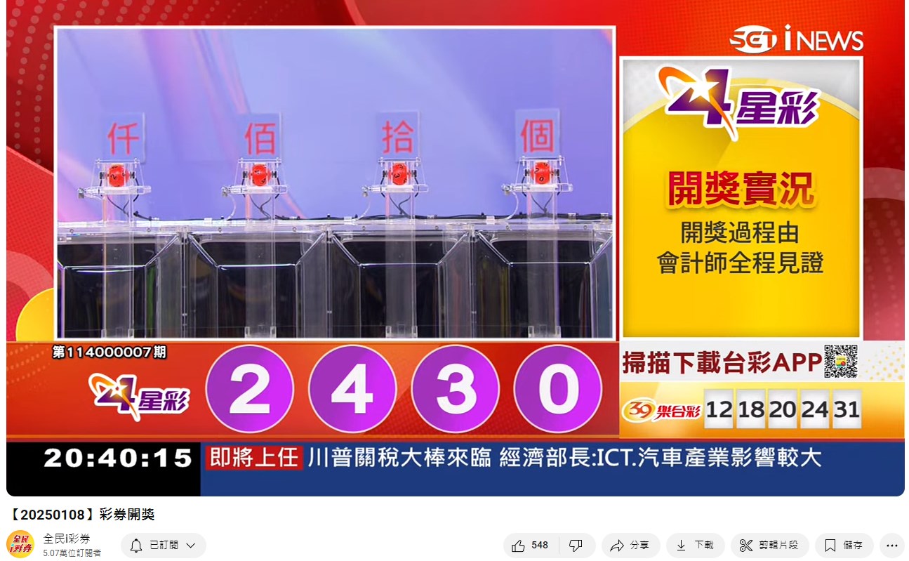 專區【全民i彩券】台灣彩券開獎實況轉播 威力彩、今彩539、三星彩、四星彩 |三立新聞網 SETN.com - YouTube