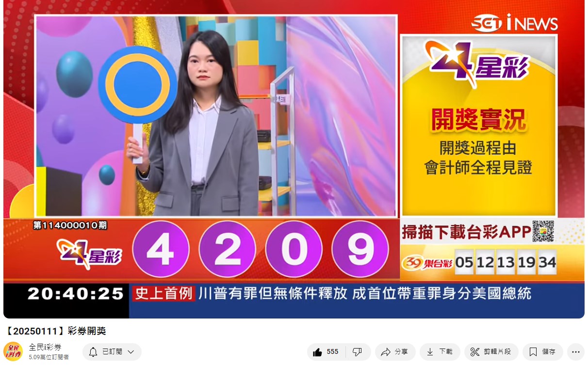 備註: 台彩因給全民兌獎方便,會在電視節目播完後,於全民i彩券YT官方頻道