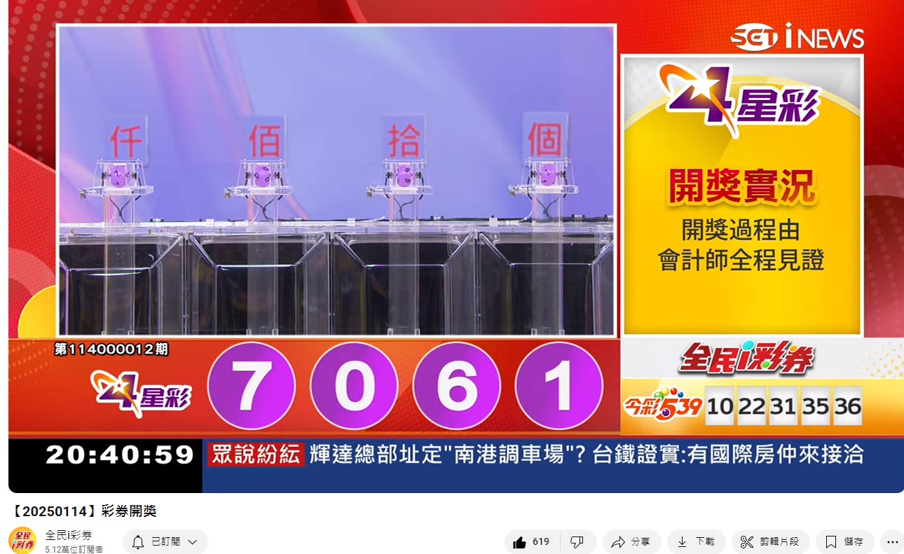 專區【全民i彩券】台灣彩券開獎實況轉播 威力彩、今彩539、三星彩、四星彩 |三立新聞網 SETN.com - YouTube