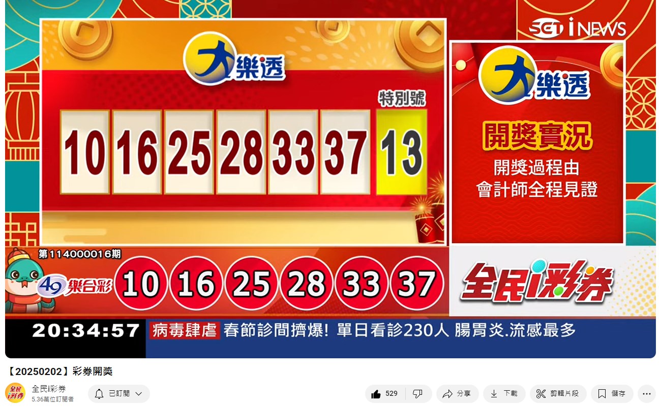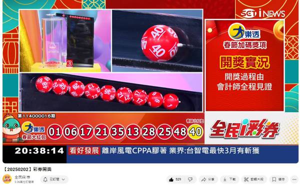 備註: 台彩因給全民兌獎方便,會在電視節目播完後,於全民i彩券YT官方頻道