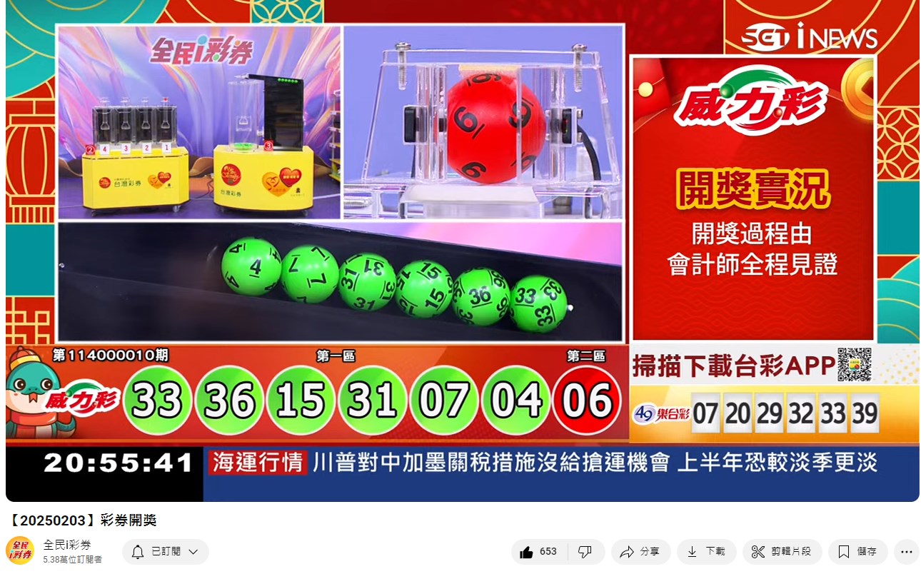 專區【全民i彩券】台灣彩券開獎實況轉播 威力彩、今彩539、三星彩、四星彩 |三立新聞網 SETN.com - YouTube