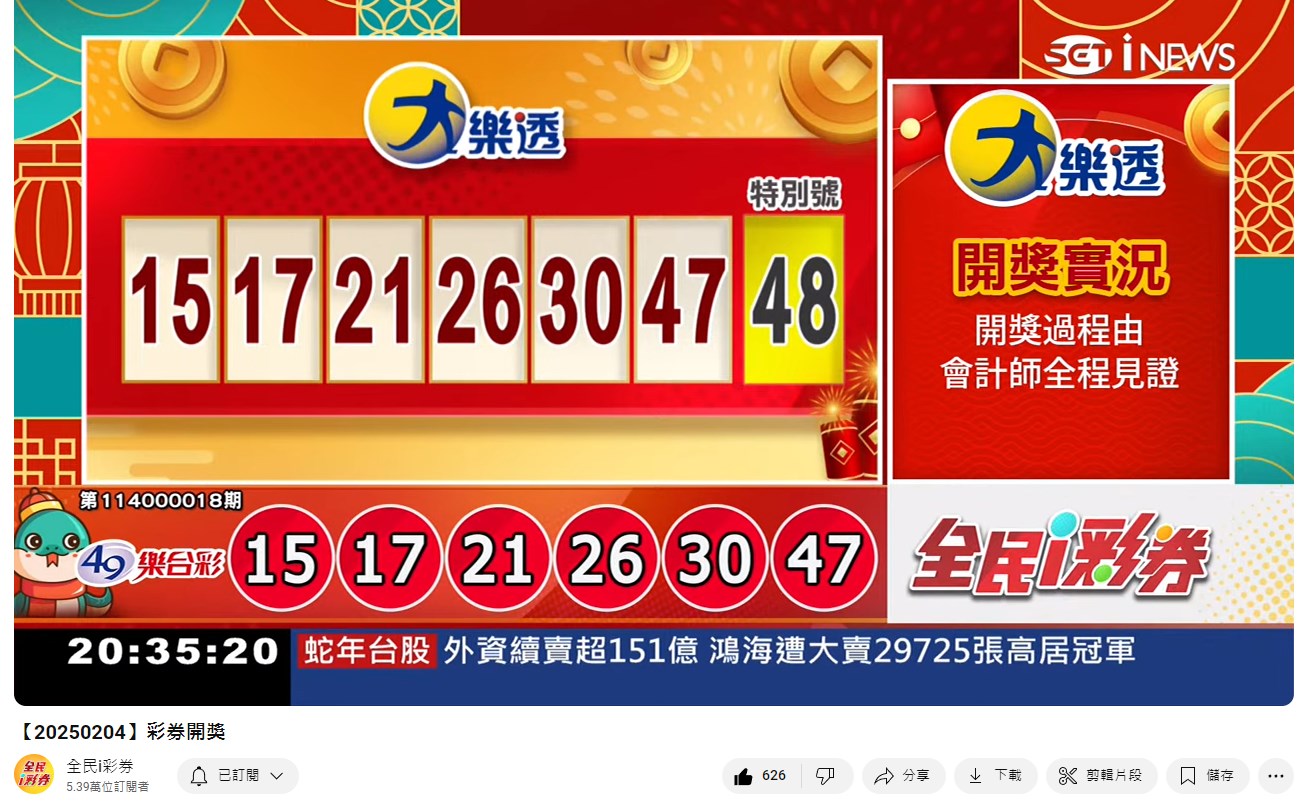 專區【全民i彩券】台灣彩券開獎實況轉播 威力彩、今彩539、三星彩、四星彩 |三立新聞網 SETN.com - YouTube