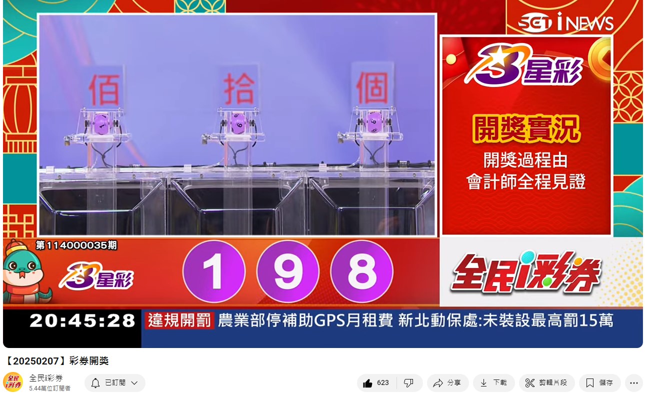 備註: 台彩因給全民兌獎方便,會在電視節目播完後,於全民i彩券YT官方頻道