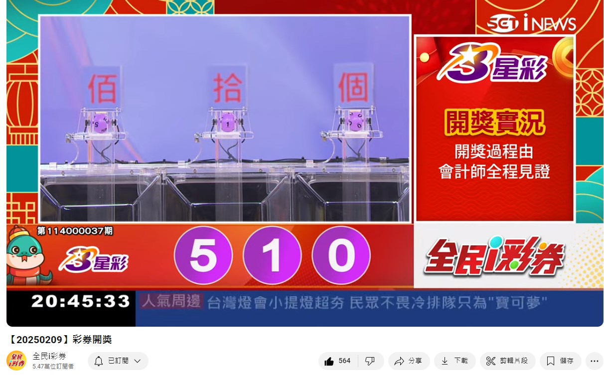備註: 台彩因給全民兌獎方便,會在電視節目播完後,於全民i彩券YT官方頻道