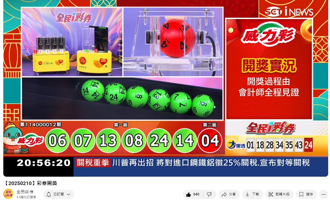 備註: 台彩因給全民兌獎方便,會在電視節目播完後,於全民i彩券YT官方頻道
