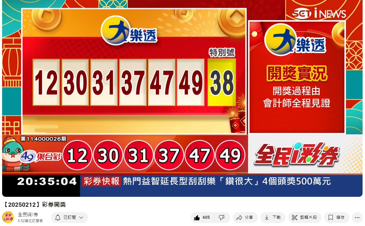 114年2月05日春節即時開獎 來自全民i彩券YT [三立新聞網SETN][2月06日重播]