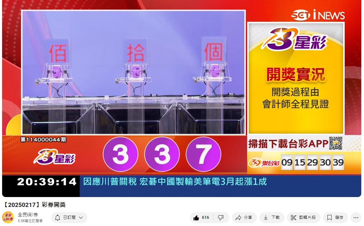 專區【全民i彩券】台灣彩券開獎實況轉播 威力彩、今彩539、三星彩、四星彩 |三立新聞網 SETN.com - YouTube
