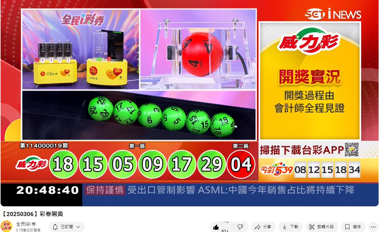 專區【全民i彩券】台灣彩券開獎實況轉播 威力彩、今彩539、三星彩、四星彩 |三立新聞網 SETN.com - YouTube