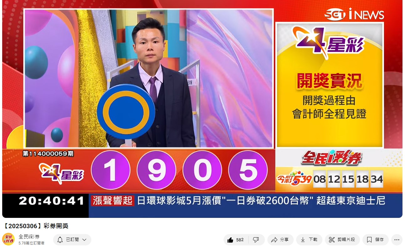 備註: 台彩因給全民兌獎方便,會在電視節目播完後,於全民i彩券YT官方頻道