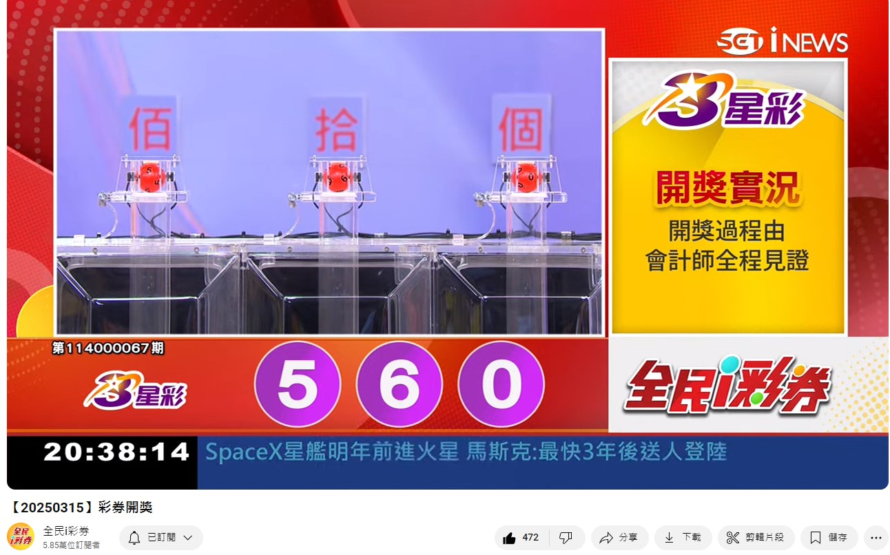 專區【全民i彩券】台灣彩券開獎實況轉播 威力彩、今彩539、三星彩、四星彩 |三立新聞網 SETN.com - YouTube