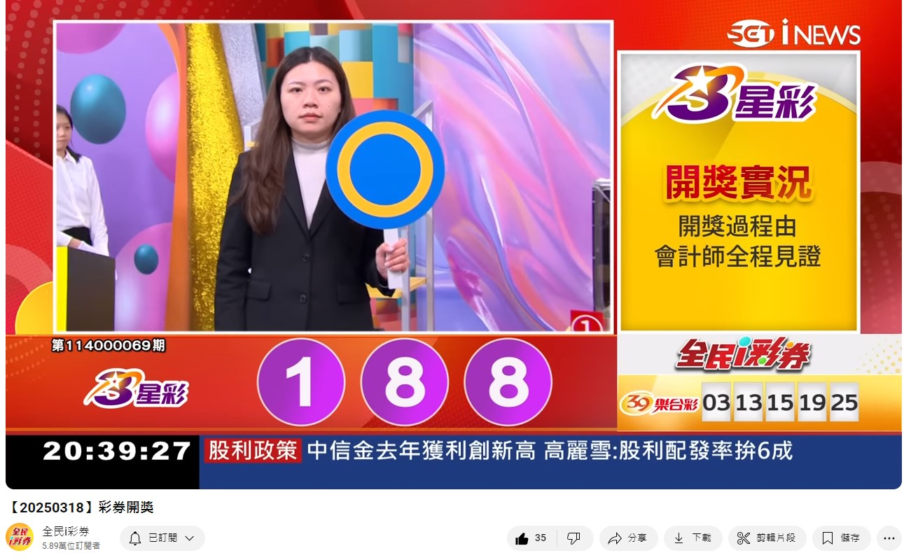 114年3月18日彩券開獎 來自全民i彩券YT [三立新聞網SETN][3月19日重播]