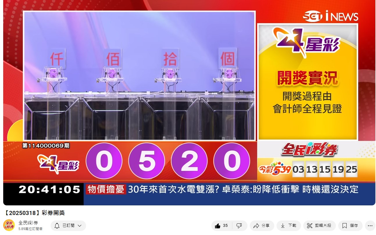 專區【全民i彩券】台灣彩券開獎實況轉播 威力彩、今彩539、三星彩、四星彩 |三立新聞網 SETN.com - YouTube