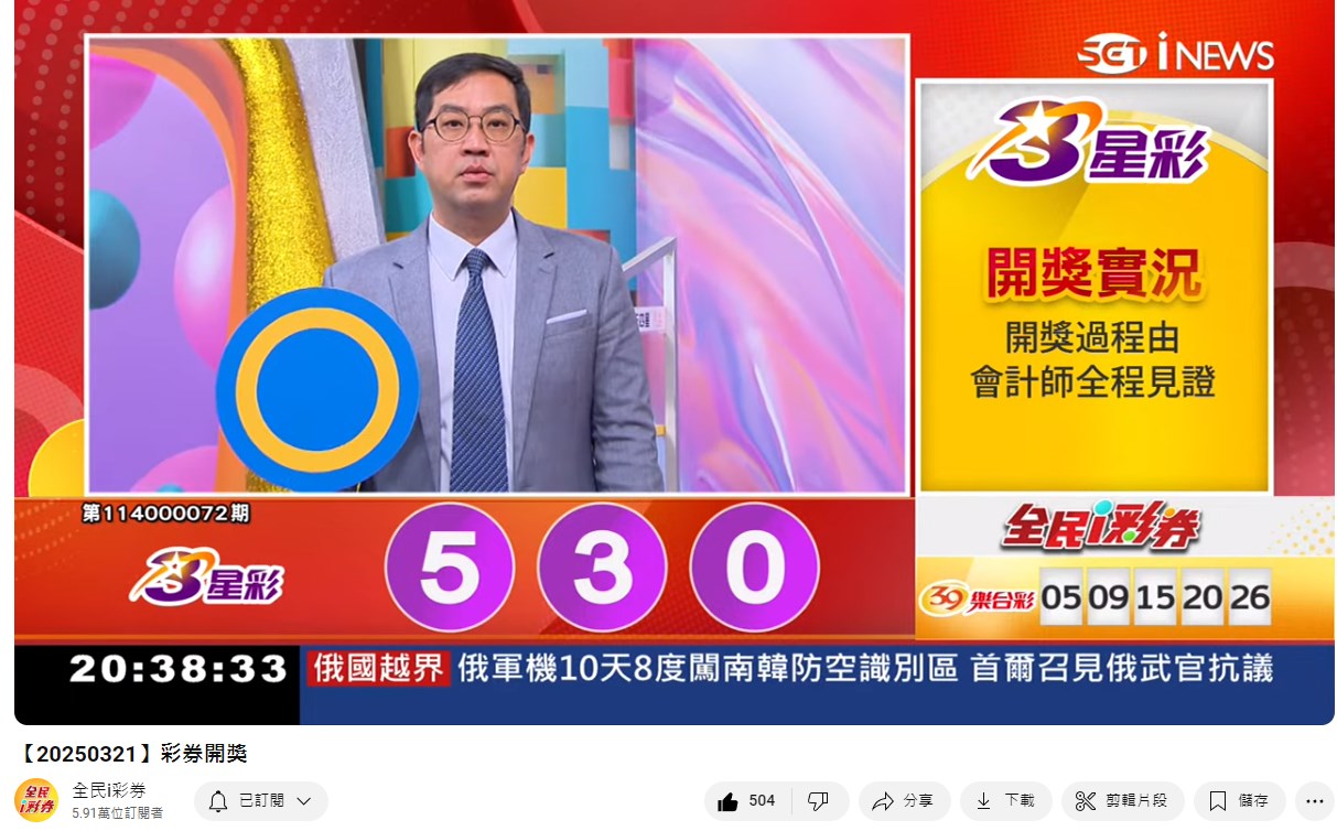 114年3月21日彩券開獎 來自全民i彩券YT [三立新聞網SETN][3月22日重播]