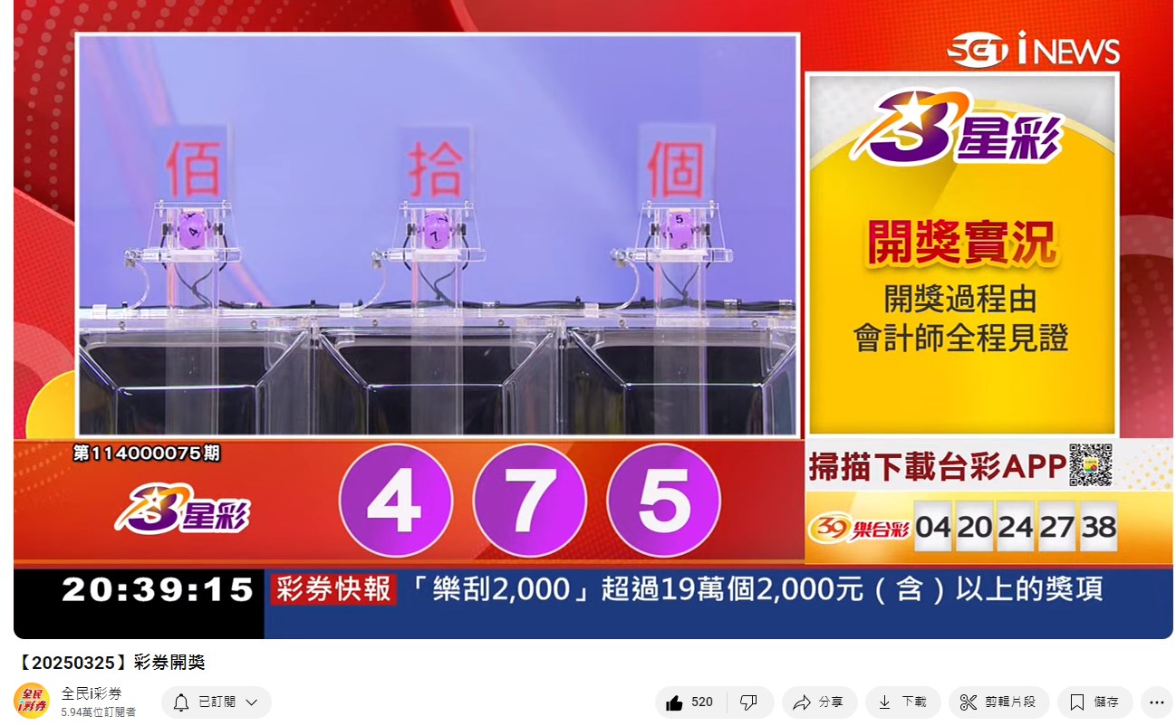 114年3月20日彩券開獎 來自全民i彩券YT [三立新聞網SETN][3月21日重播]
