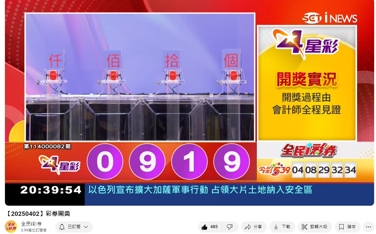 專區【全民i彩券】台灣彩券開獎實況轉播 威力彩、今彩539、三星彩、四星彩 |三立新聞網 SETN.com - YouTube