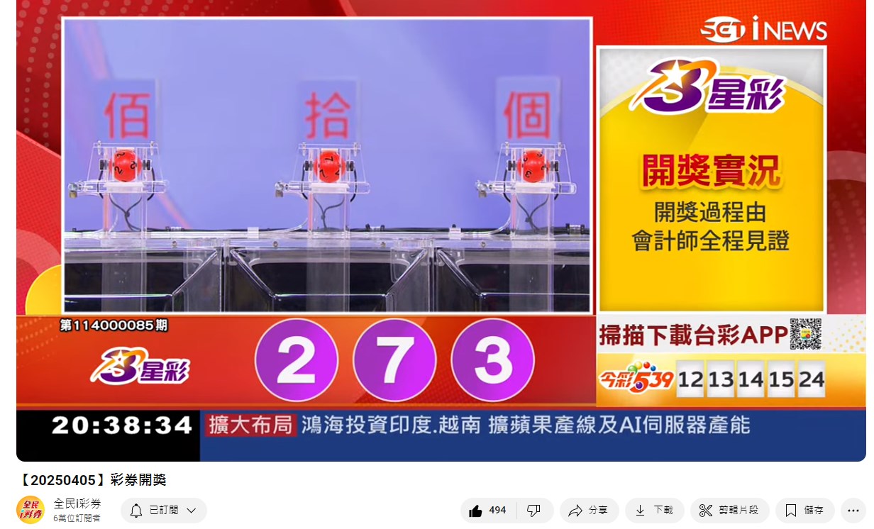 備註: 台彩因給全民兌獎方便,會在電視節目播完後,於全民i彩券YT官方頻道