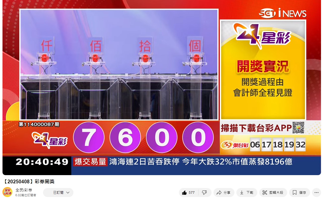 114年4月07日彩券開獎 來自全民i彩券YT [三立新聞網SETN][4月08日重播]