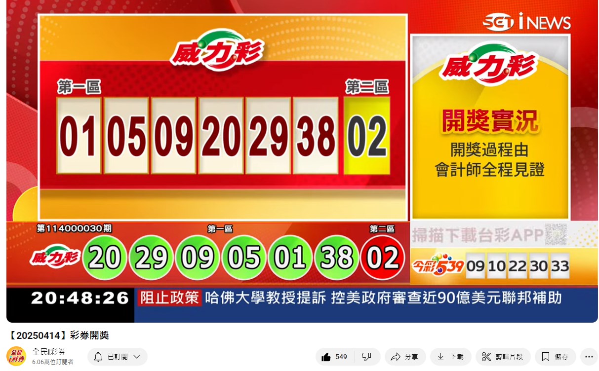 專區【全民i彩券】台灣彩券開獎實況轉播 威力彩、今彩539、三星彩、四星彩 |三立新聞網 SETN.com - YouTube