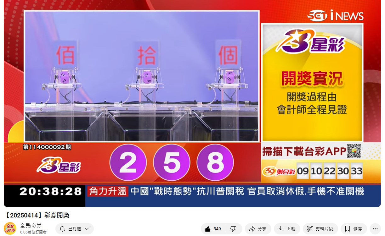 114年4月03日彩券開獎 來自全民i彩券YT [三立新聞網SETN][4月04日重播]