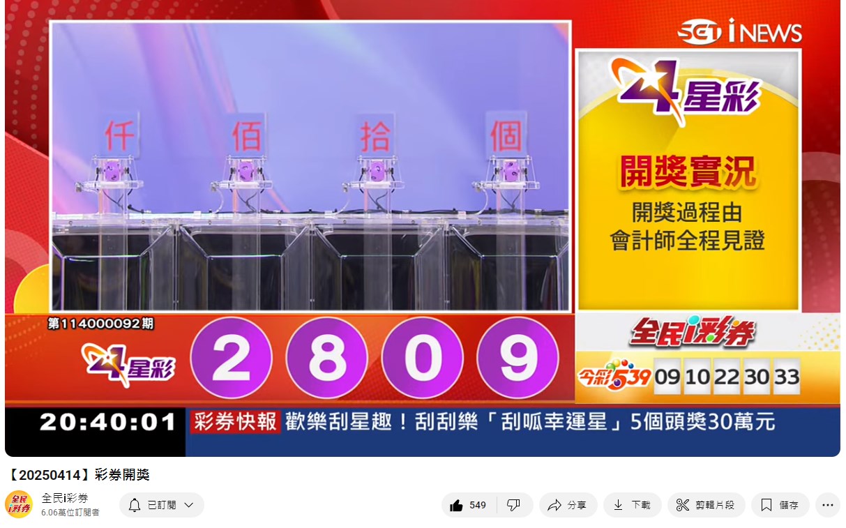 114年4月09日彩券開獎 來自全民i彩券YT [三立新聞網SETN][4月10日重播]