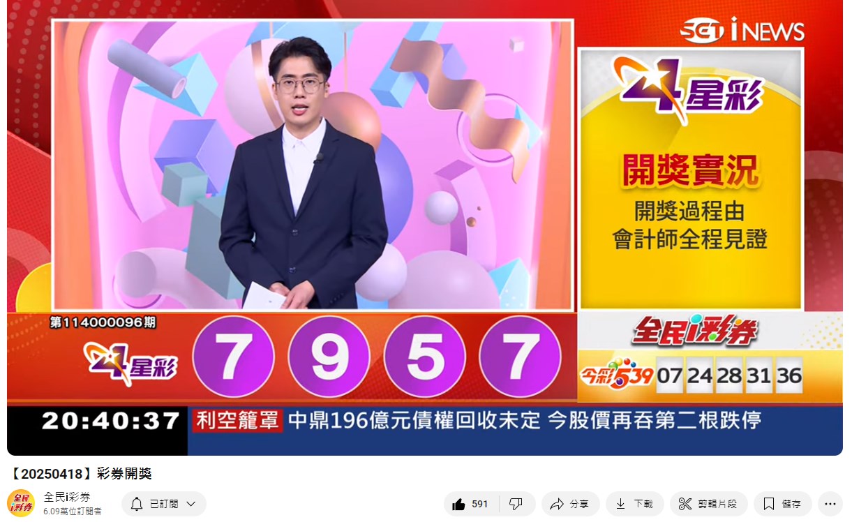 114年4月18日彩券開獎 來自全民i彩券YT [三立新聞網SETN][4月19日重播]