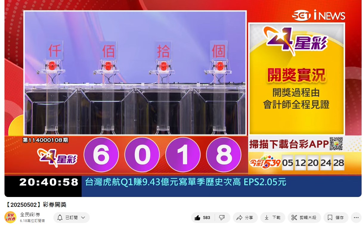 114年4月18日彩券開獎 來自全民i彩券YT [三立新聞網SETN][4月19日重播]