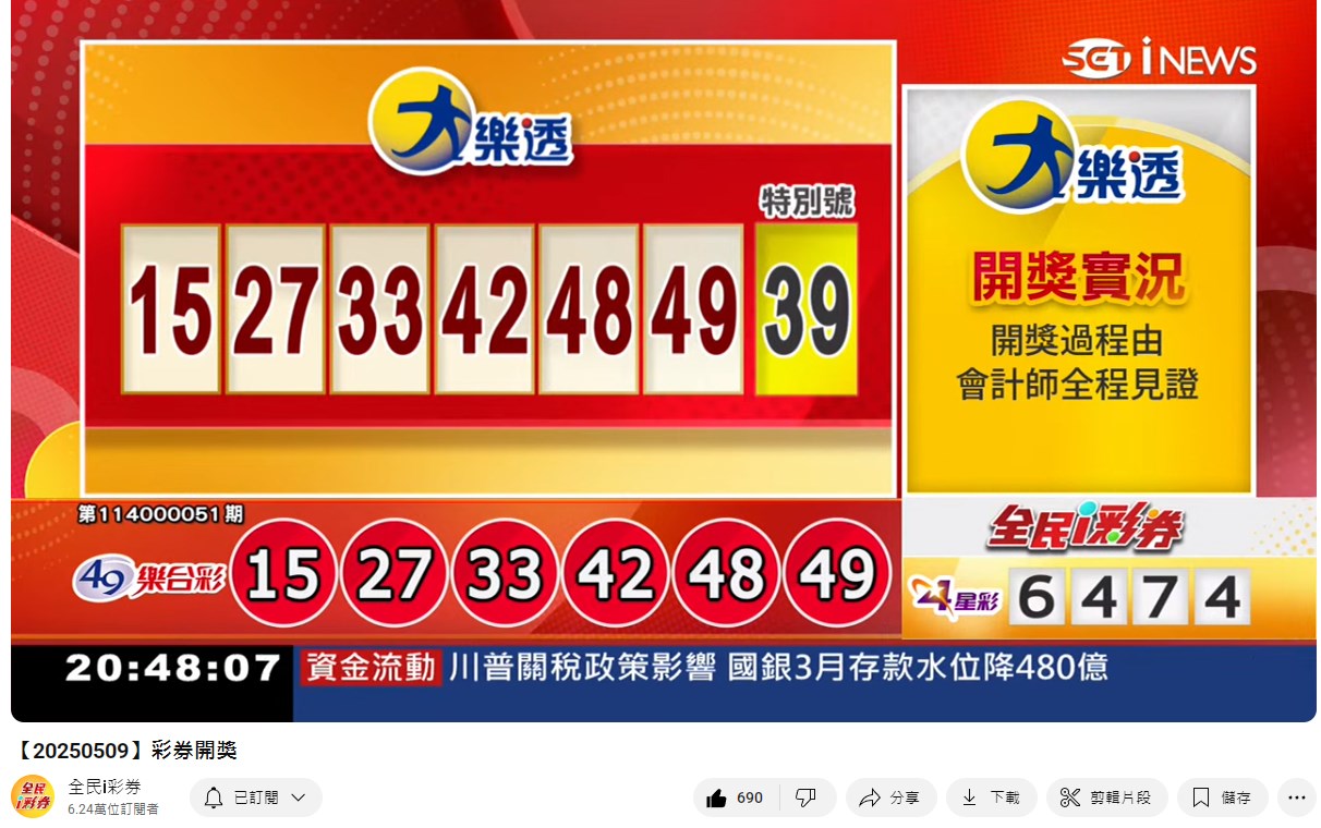 專區【全民i彩券】台灣彩券開獎實況轉播 威力彩、今彩539、三星彩、四星彩 |三立新聞網 SETN.com - YouTube