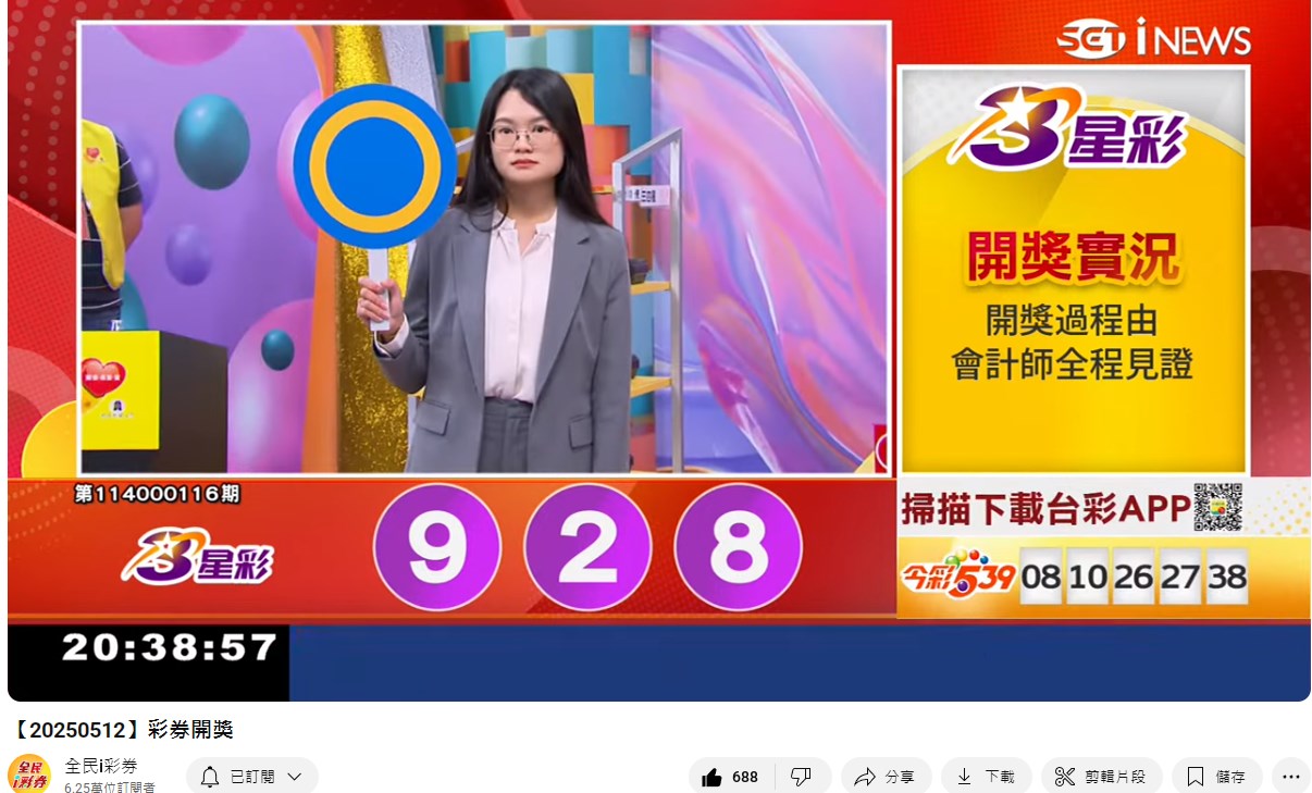 備註: 台彩因給全民兌獎方便,會在電視節目播完後,於全民i彩券YT官方頻道