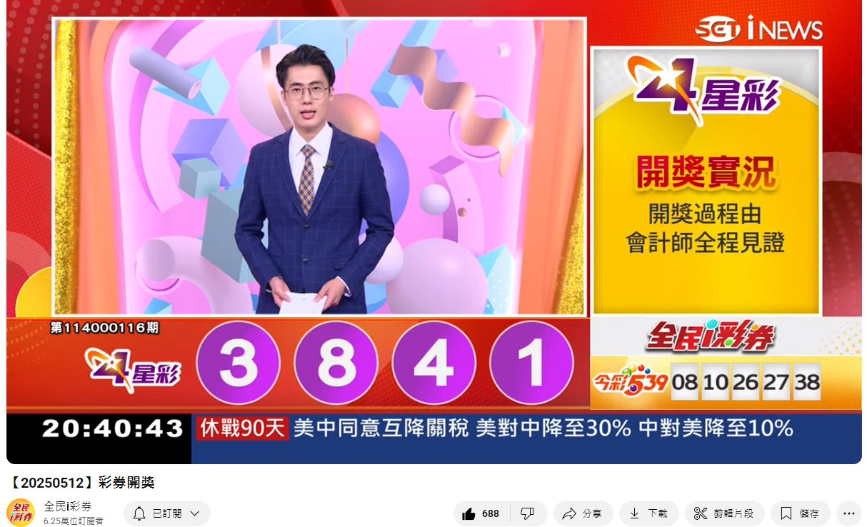 114年5月10日彩券開獎 來自全民i彩券YT [三立新聞網SETN][5月11日重播]