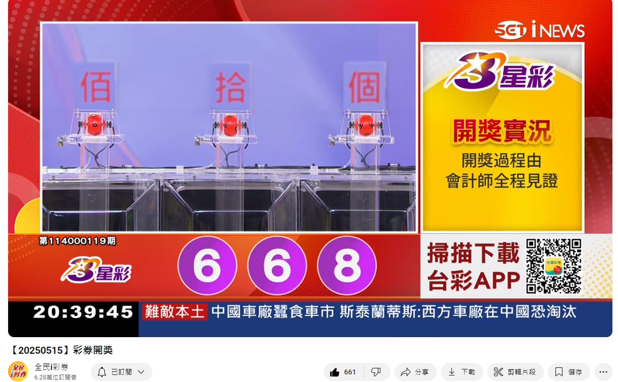 備註: 台彩因給全民兌獎方便,會在電視節目播完後,於全民i彩券YT官方頻道