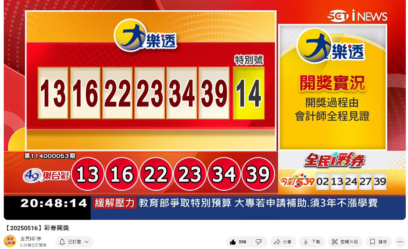 114年5月16日彩券開獎 來自全民i彩券YT [三立新聞網SETN][5月17日重播]