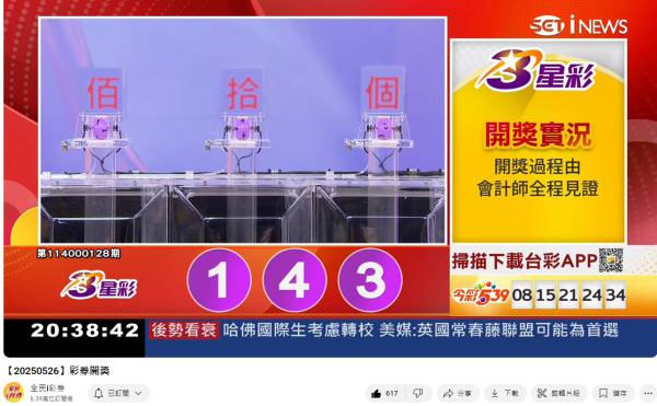 114年5月26日彩券開獎 來自全民i彩券YT [三立新聞網SETN][5月27日重播]