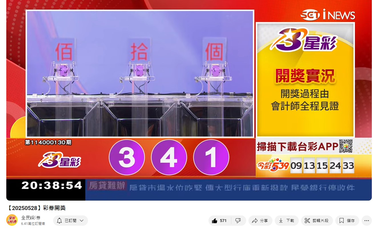 專區【全民i彩券】台灣彩券開獎實況轉播 威力彩、今彩539、三星彩、四星彩 |三立新聞網 SETN.com - YouTube