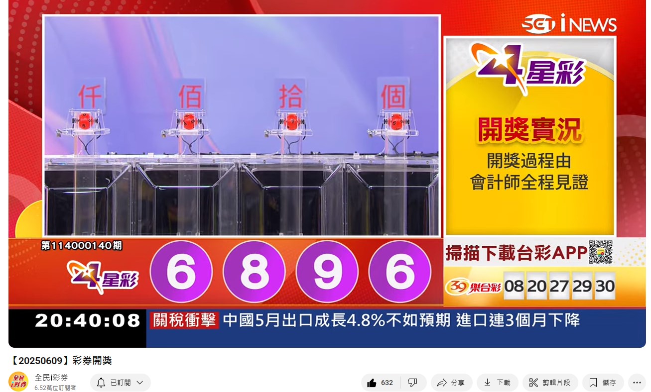 114年6月09日彩券開獎 來自全民i彩券YT [三立新聞網SETN][6月10日重播]
