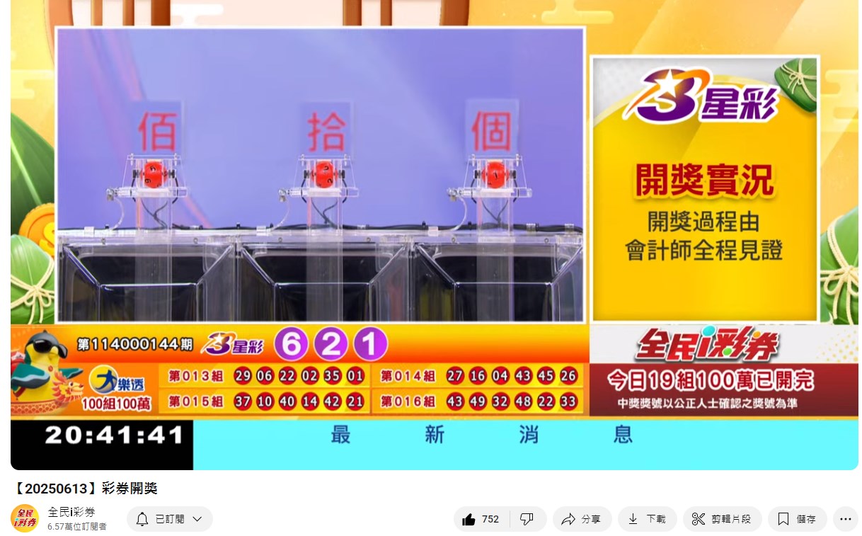 114年6月13日彩券開獎 來自全民i彩券YT [三立新聞網SETN][6月14日重播]