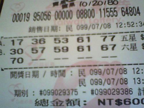金天隨機買500元的5星沒中~半個!