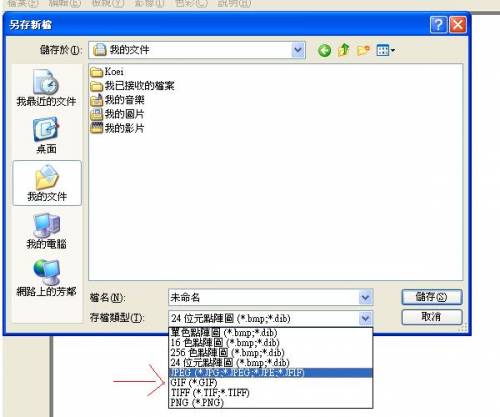 存檔時要選jpg檔