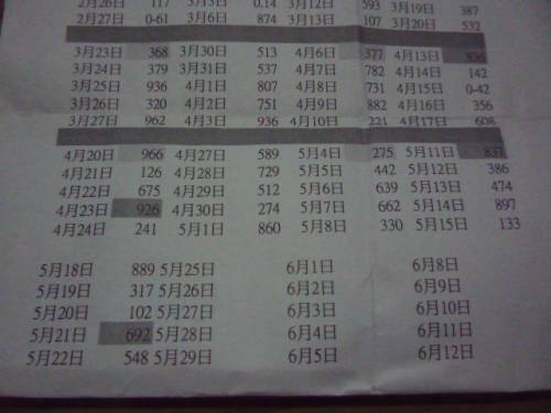 4月23日 926 4月30日 274 5月7日 662 5月14日 897