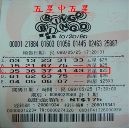另外,A組號碼在17:20那期開出4個,她有中5中4,500元