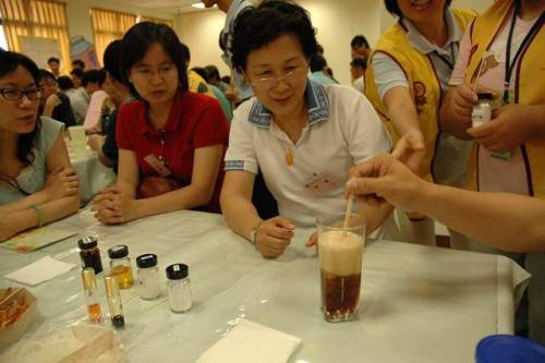 把各種化學原料加到水裡 最後加入小蘇打粉