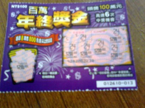 我買百萬年終獎金刮刮樂中ㄋ1200元,還是全壘打