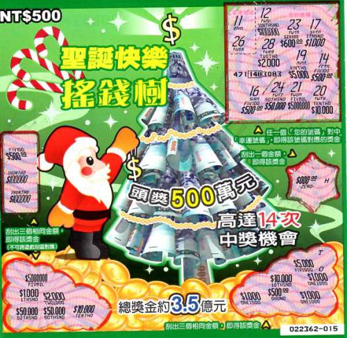 討論版列表 » 刮刮樂討論版 » [分享] (12-03) 聖誕快樂搖錢樹T H O X 1