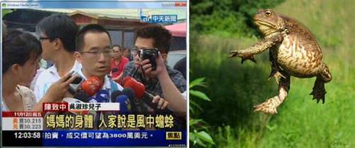 他媽 媽 是蟾蜍 ㄟ 這不系哇共ㄟ喔 是阿中共ㄟ