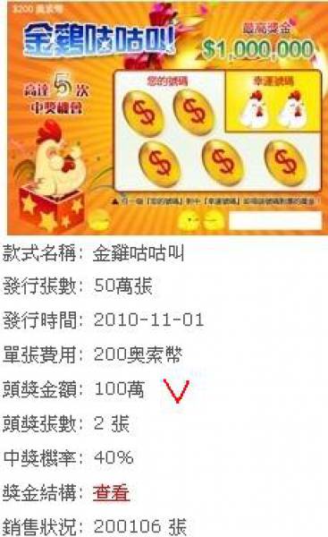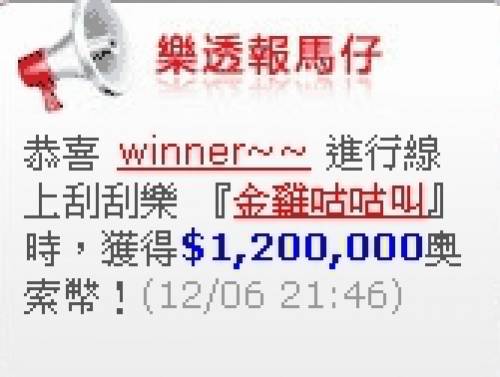 [其它] (12-07) 恭禧幸運贏走金雞咕咕叫中1,200,000