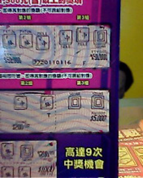 這張是~~~八號 !!因為我抓了跟編號有關的數字~~不過~~真的是運氣啦~~在看清了刮刮的真面目之後~現在我都是偶爾刮幾張而已~~po圖只想讓奧索朋友們分享我的喜悅!~~因為我在刮道這張5000時~~旁邊的婆婆媽媽都跟我借來看~~雖然獎額不大~~~但刮刮樂要中到5000真的不容易 ~~