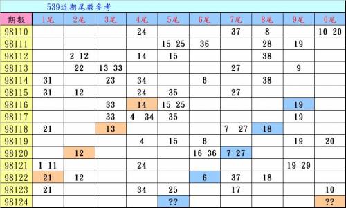 <<6/23>>539尾數圖參考