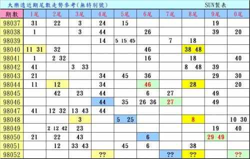 提供這樣的尾數走勢參考.只是要在選碼上有個方向及合牌時參考.