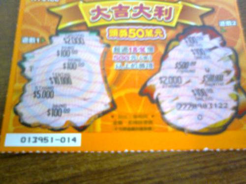 我昨天買ㄋㄧ張大吉大利刮刮樂中ㄋ200元