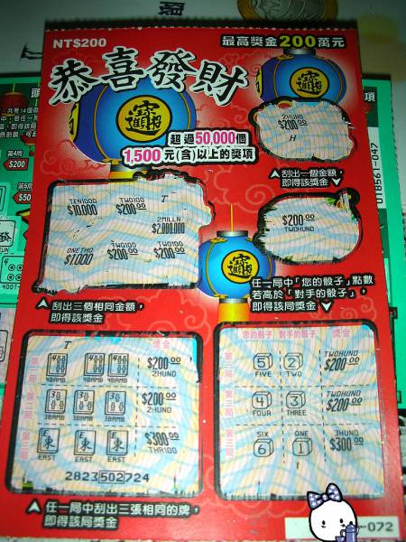 討論版列表 » 刮刮樂討論版 » [分享] (02-08) 祝大家恭喜發財..中TTH...